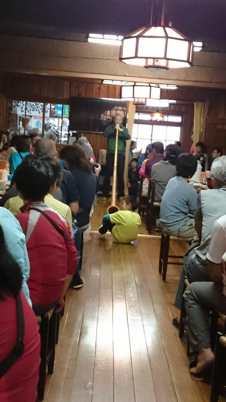 そして夕食です。恒例食後の社長のホルンもありましたよ。