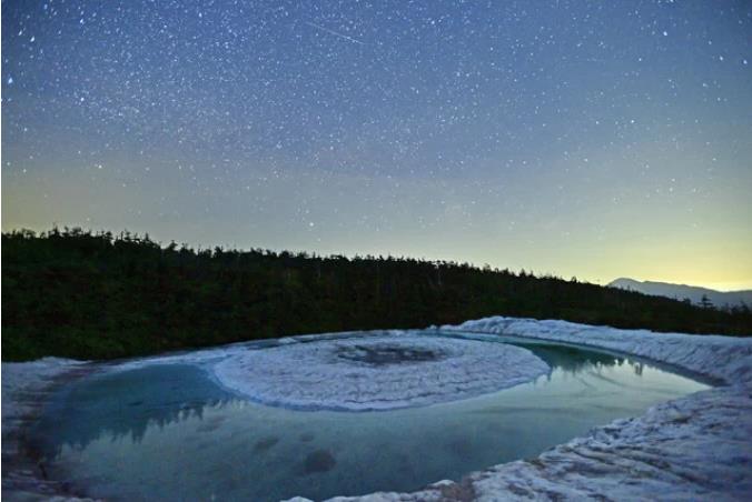 八幡平市と秋田県にまたがる八幡平(1613m)山頂付近で「ドラゴンアイ」が夏の夜に、神秘的な風景を織りなしているそうだ。