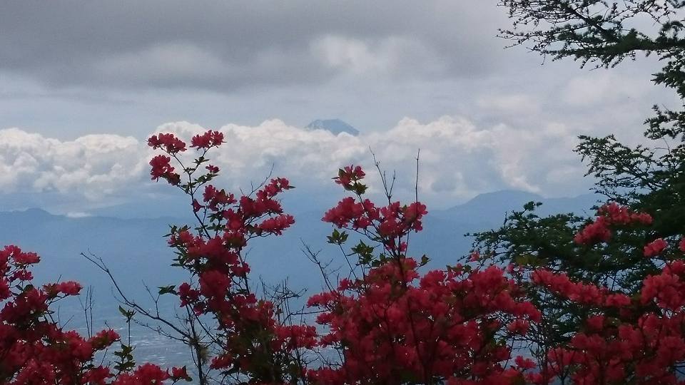 富士山をバックにレンゲツツジ登山
